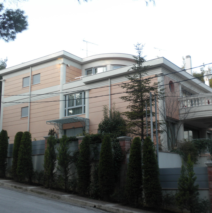 The project was implemented in 2001-2003. This luxurious house, total area 700 m2. It is a sample of architectural design and high quality manufacturing.