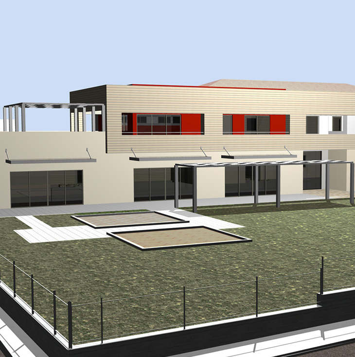 The project started in 2012 and completion is expected in 2014. This is a building with basement, ground floor, first floor and attic, total area 2.000 m2. The building is designed with bioclimatic data as the correct orientation, the existence of large transparent surfaces to the south, extensive sun shading, natural ventilation, night ventilation in summer, using double glazing coated membrane low emissivity (low e), installation of ceiling fans, green roof construction etc.